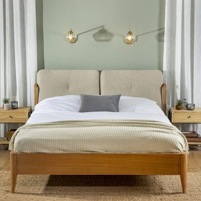 מיטה עץ אלון מלא בגוון בהיר דגם סיאסטה